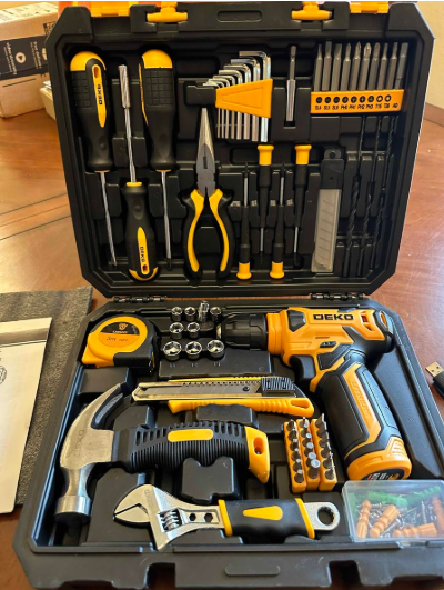 This all-in-one multi-tool set is designed for home improvement, DIY projects, furniture assembly, repairs, decorating, and gardening. With a cordless rechargeable drill and a complete 126-piece accessory kit, it delivers outstanding value — one set replaces multiple tools.